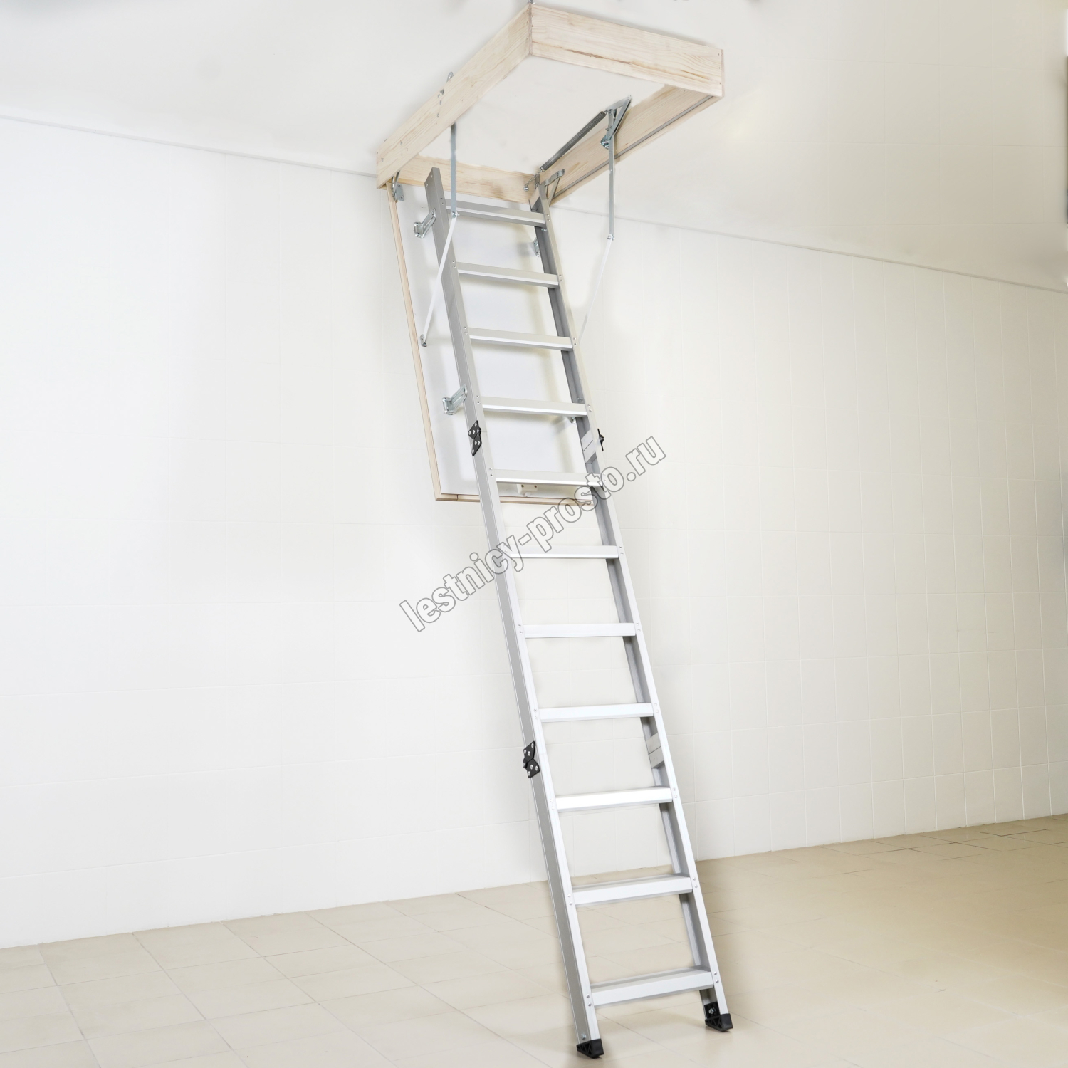 Лестница чердачная складная алюминиевая 3-х секционная. Ступени полностью выполнены из алюминия.