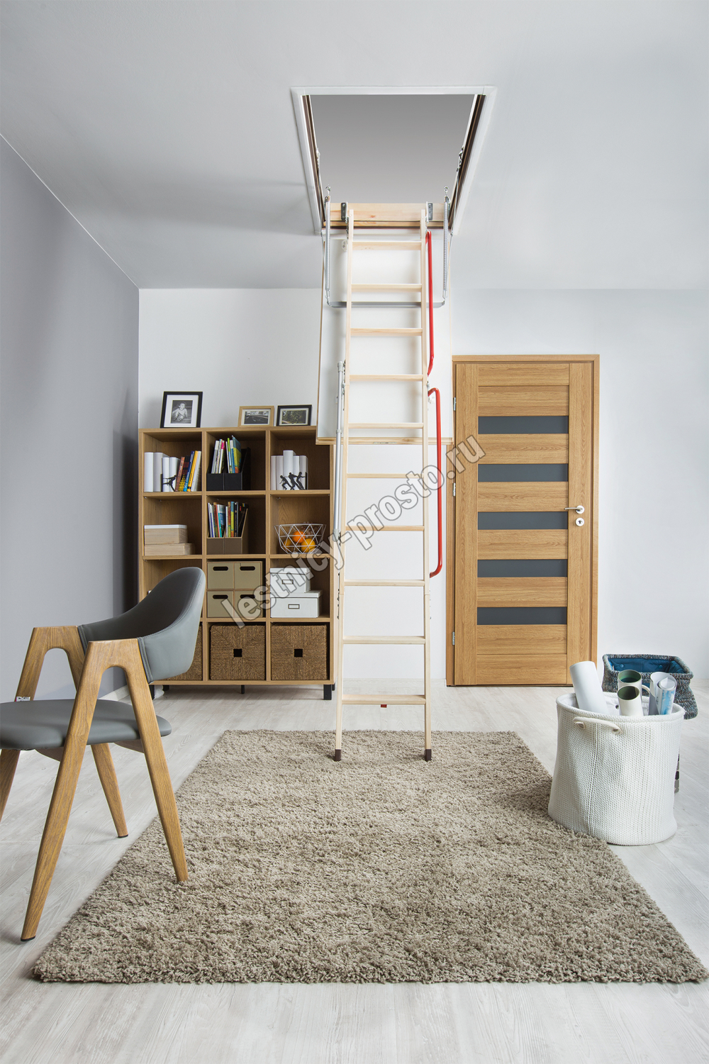 Складная чердачная лестница LWL имеет повышенные теплоизоляционные параметры и высокий класс герметичности. Утеплённая крышка люка белого цвета. Лестница оборудована специальным механизмом LXM-3 и крючком на нижней ступени марша для стержня, которые в комплексе обеспечивают лёгкость и плавность открывания и закрывания лестницы. Снабжена дополнительным поручнем для безопасного подъёма.