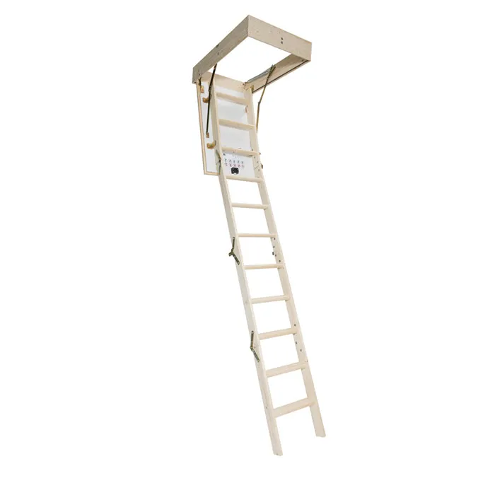Складная 4-х секционная чердачная лестница. Ступени выполнены из сосны, имеют противоскользящие насечки, направляющие из металла.