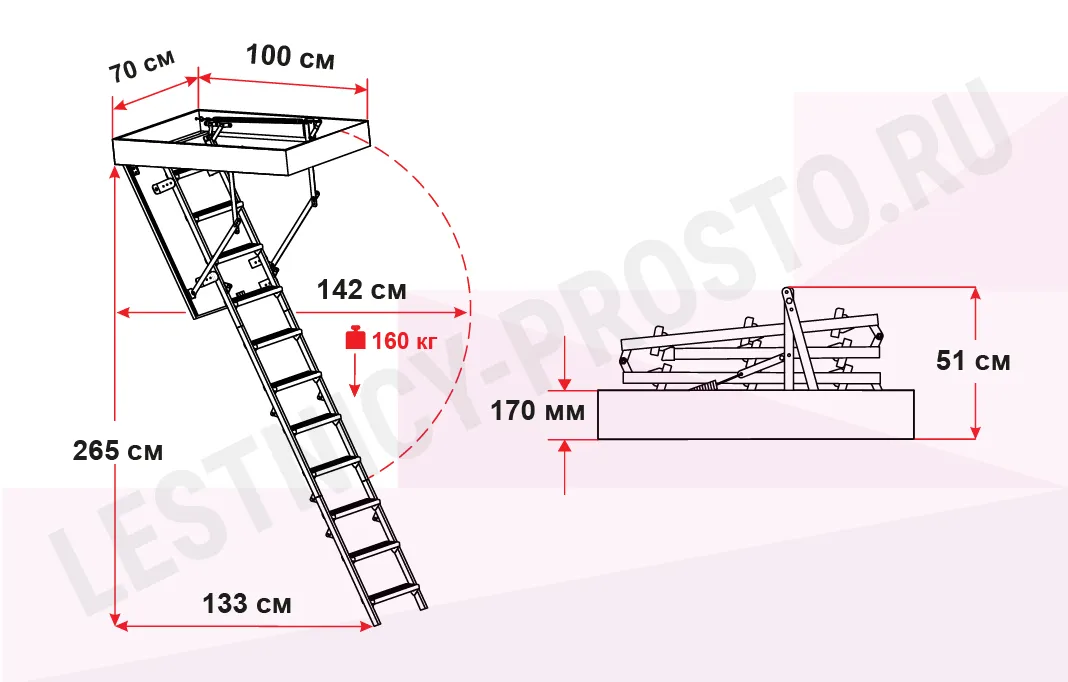 Чердачная лестница с люком OMAN MINI POLAR 70х100 см, h-265 см