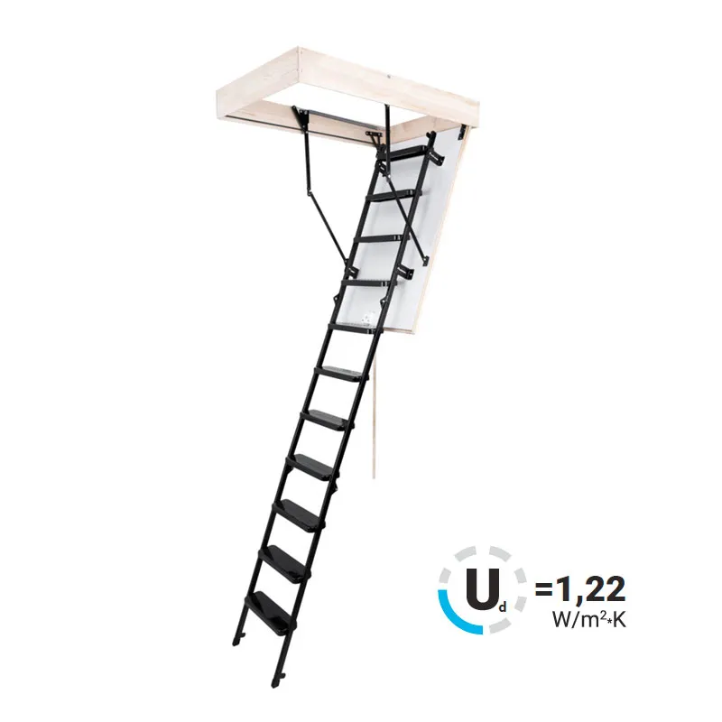 Все элементы лестницы выполнены из экологически чистых материалов и обработаны веществами, не содержащими тяжелых металлов. На ступенях антискользящие насечки. Короб лестницы изготовлен из металла. Термоизоляционная крышка типа "сэндвич" утеплена пенопластом, облицована с двух сторон ДСП белого цвета. Короб люка с уплотнителем. В комплекте деревянный стержень для открывания лестницы.