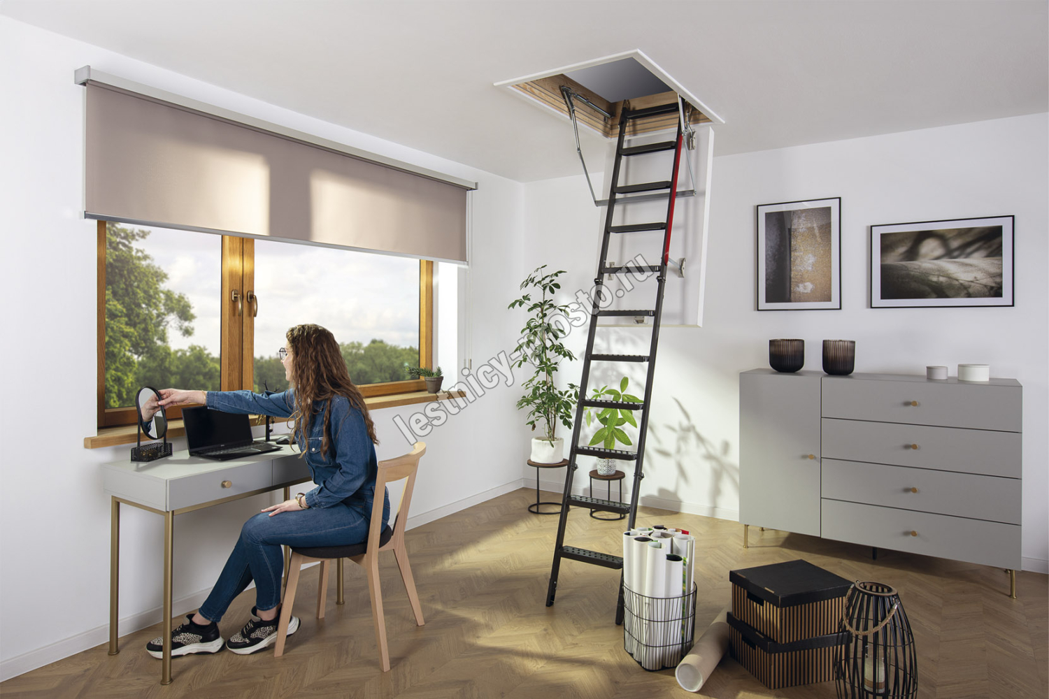 Супертеплоизоляционная металлическая чердачная лестница FAKRO LMT 70×120 см, h-280 см