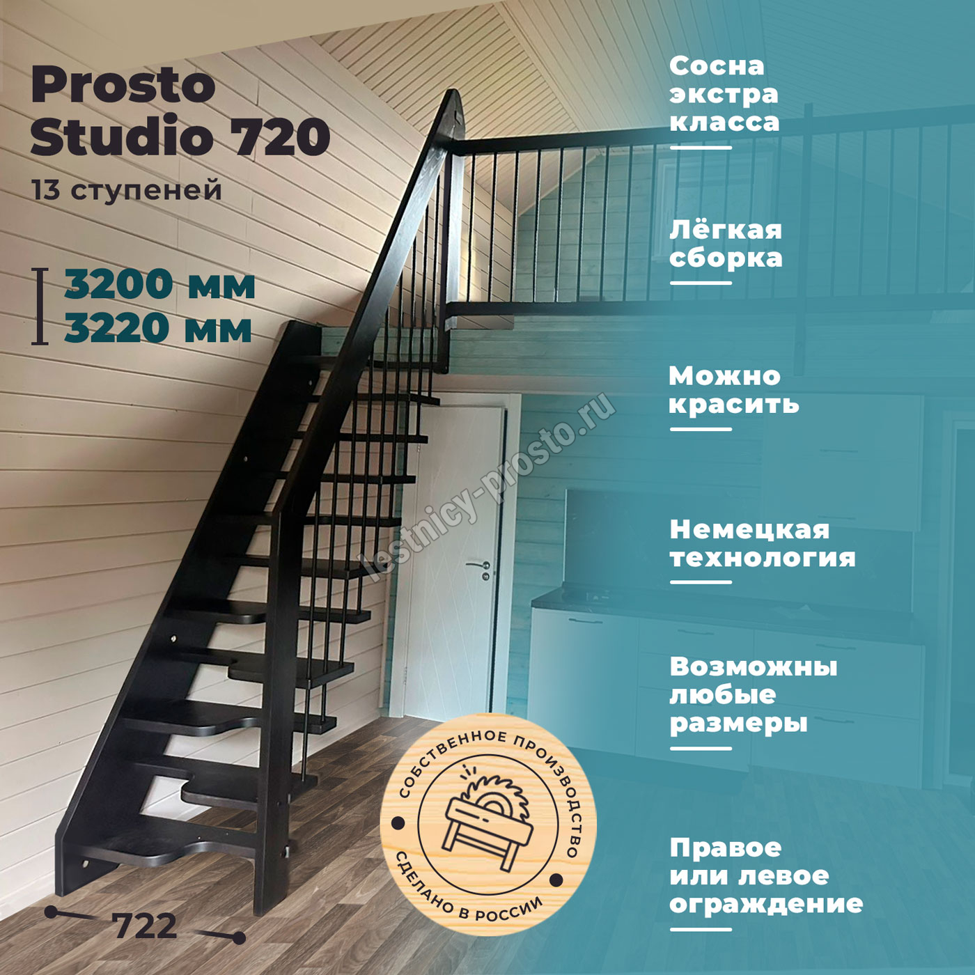 Лестница Prosto Studio 720 гусиный шаг имеет компактную конструкцию на подвесах