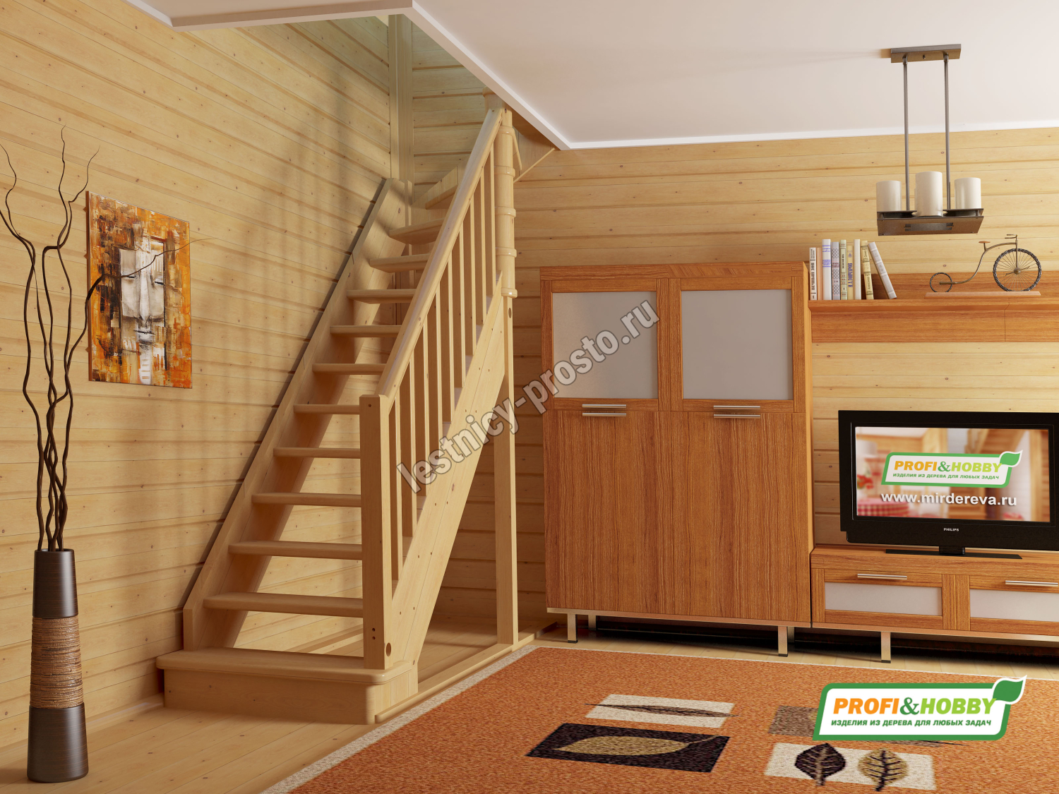 Комфортная малогабаритная лестница с подступёнками. Незаменима в помещениях, где необходимо сэкономить пространство.