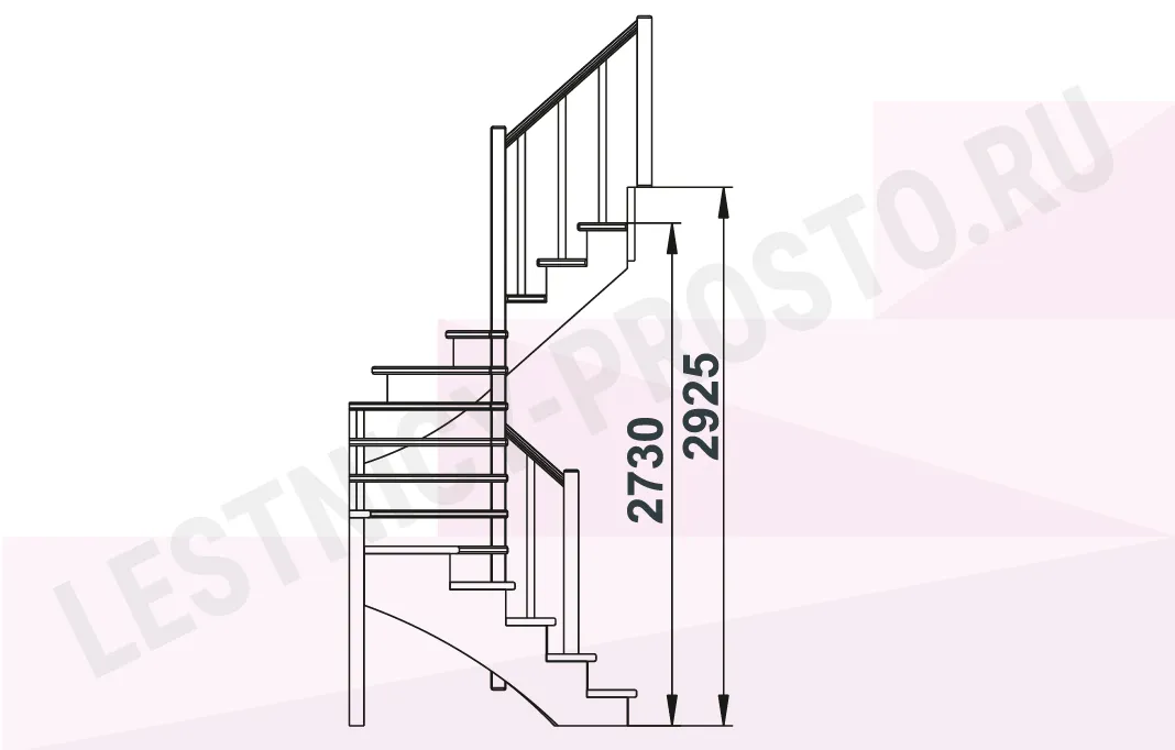 Ступени и поручень лестницы изготовлены из дуба, остальные элементы из сосны.