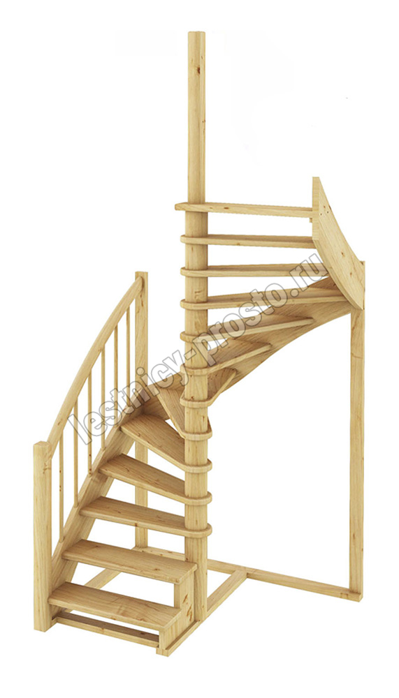 Материал: ясень (ступени и поручень), сосна (тетивы, столбы, балясины)