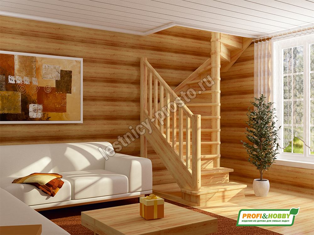Ступени и поручень лестницы изготовлены из ясеня, остальные элементы из сосны.
