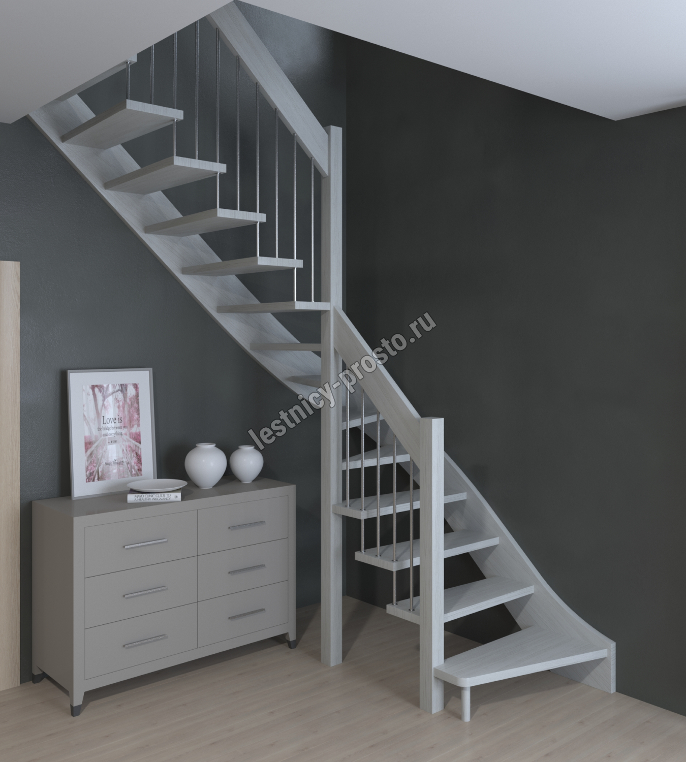 Лестница Prosto Console г-образная забежная бук, h300 см