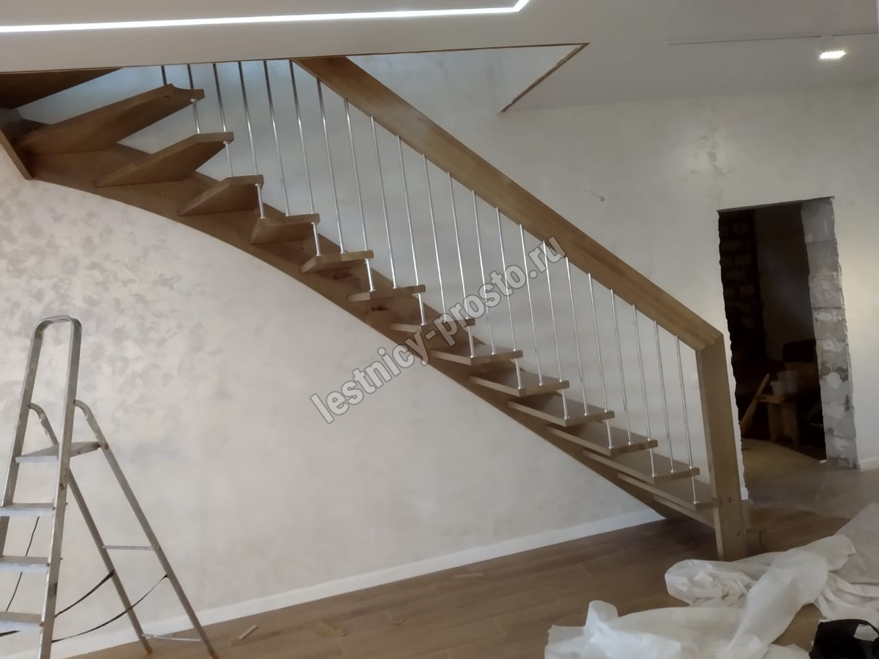возможна комбинированная лестница: из сосны (ступени бук, ясень, дуб);