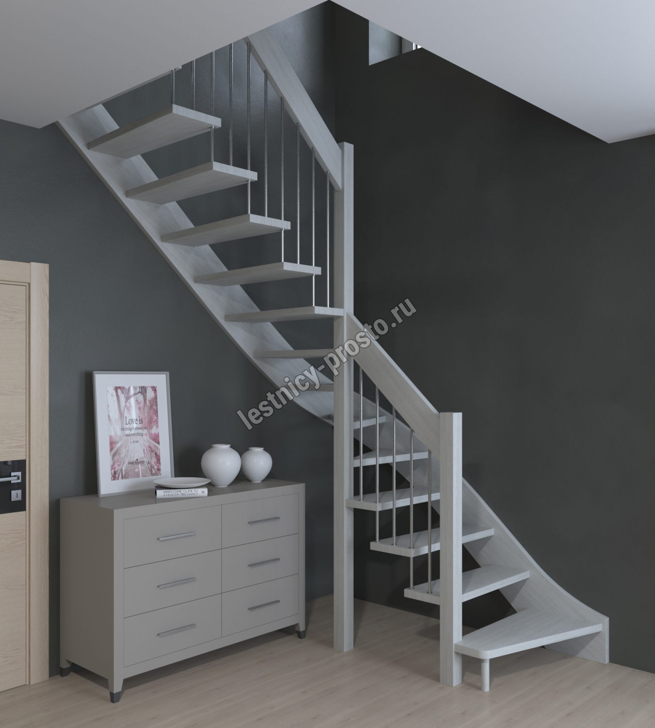 Лестница Prosto Console г-образная забежная сосна, h280 см