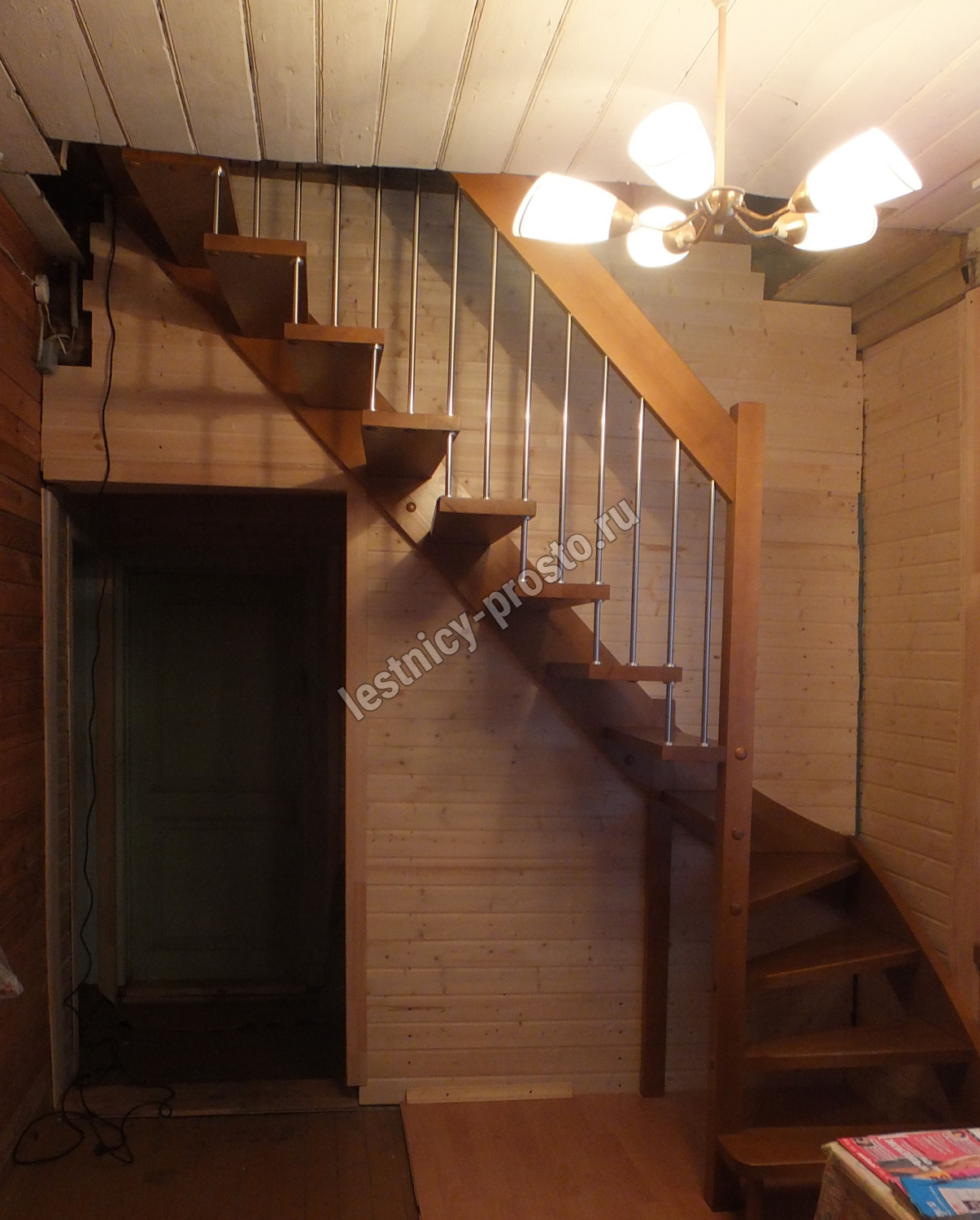 возможна комбинированная лестница: из сосны (ступени бук, ясень, дуб);