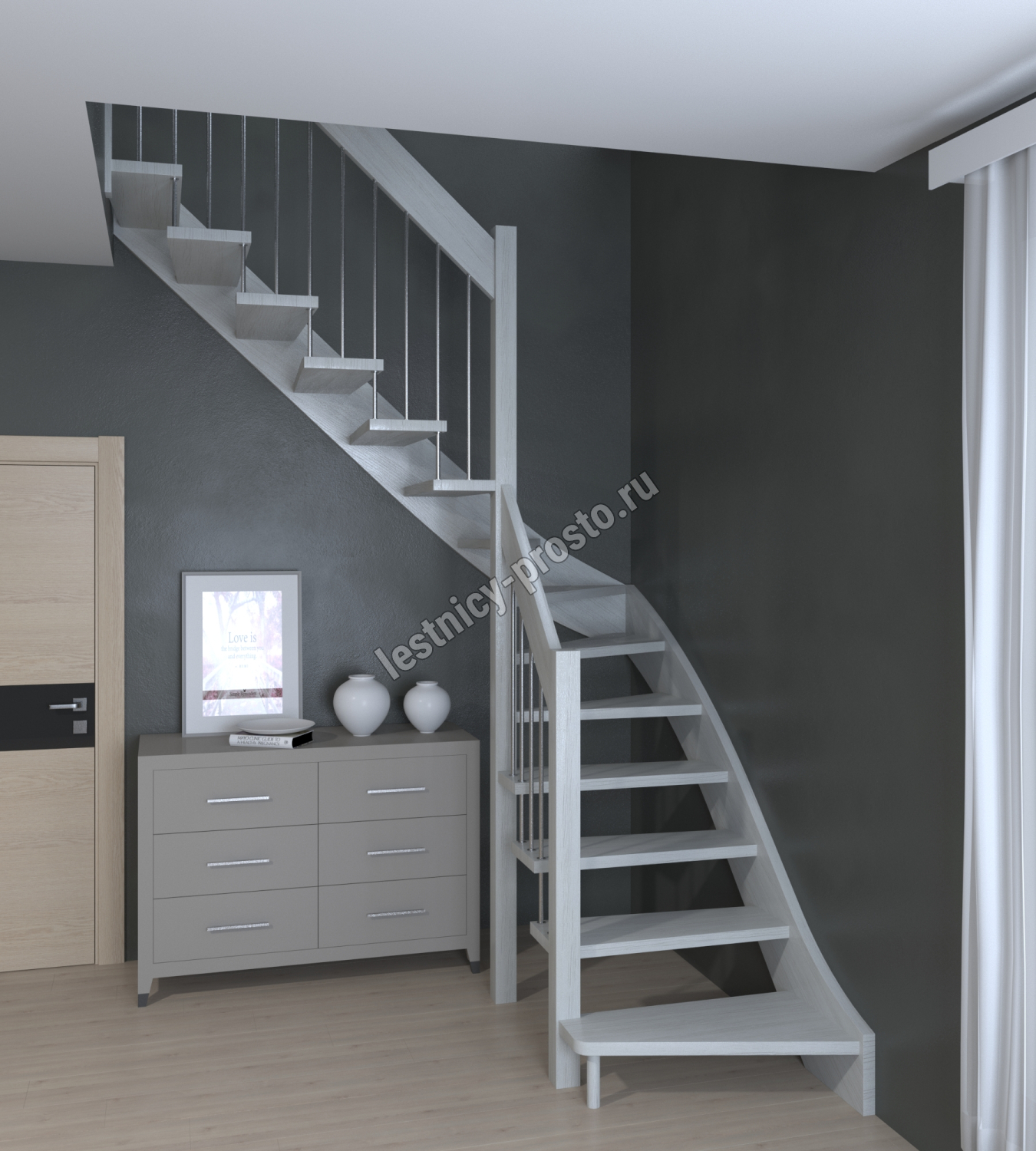 Лестница Prosto Console г-образная забежная ясень, h280 см