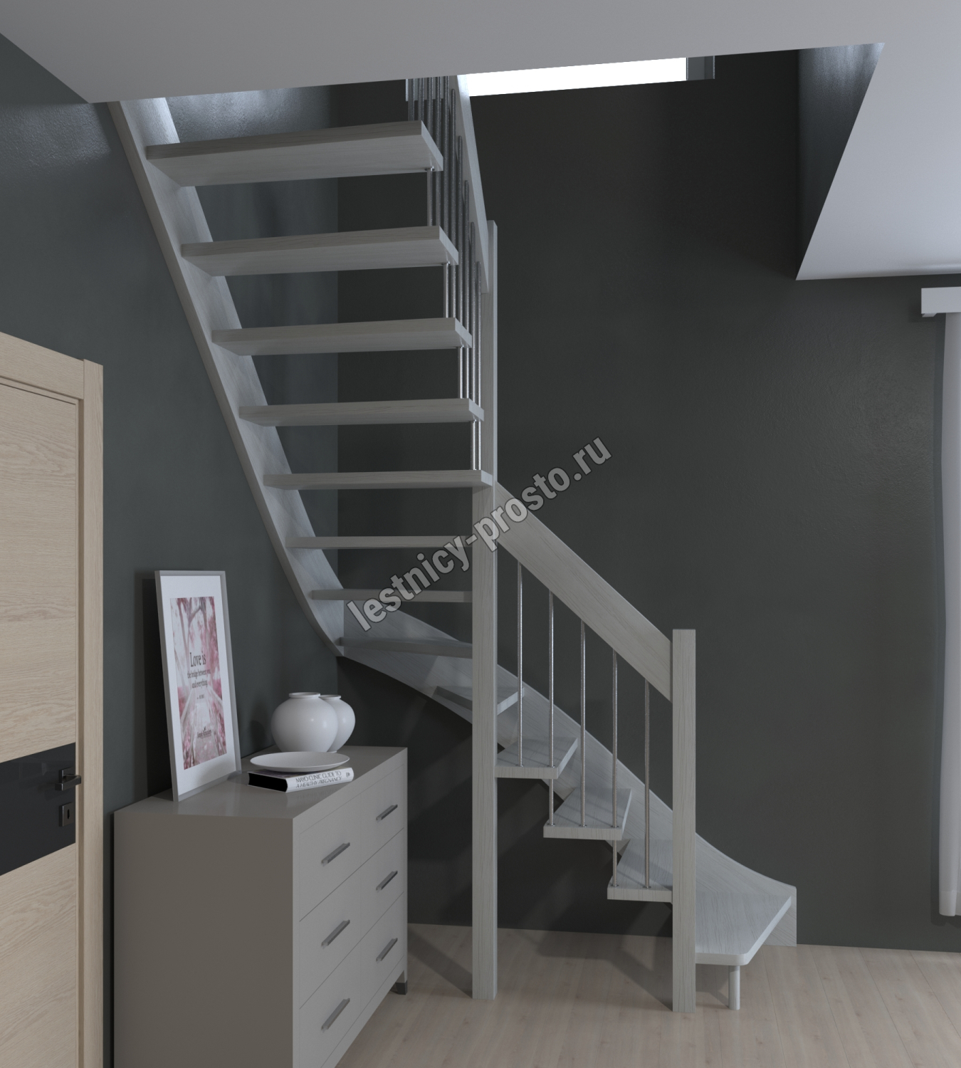 Лестница Prosto Console г-образная забежная ясень, h320 см