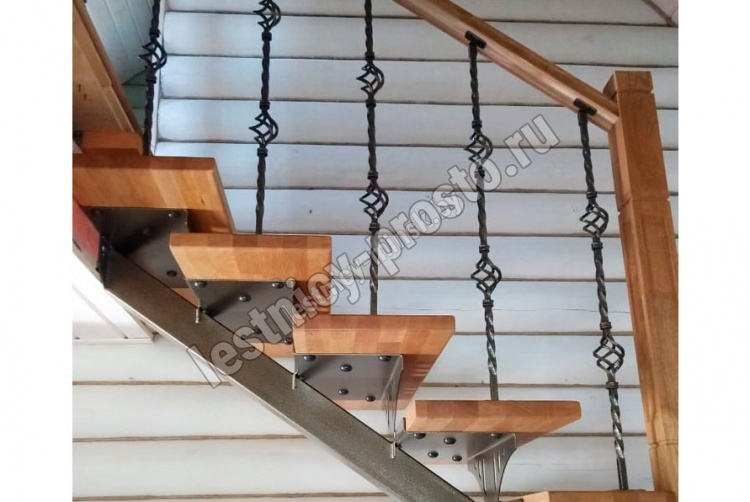 Деревянные элементы: столбы и поручень в базовой комплектации без окрашивания и какого-либо покрытия, металлические элементы окрашены в цвет каркаса лестницы.