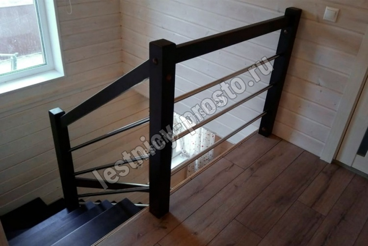 В комплекте: столбы и профильный поручень из бука без какого-либо покрытия, комплект из 3 стальных ригелей (окрашены в цвет каркаса или хром по желанию) диаметром 12 мм. Вы можете заказать у нас предварительную профессиональную покраску деревянных элементов в любой цвет.