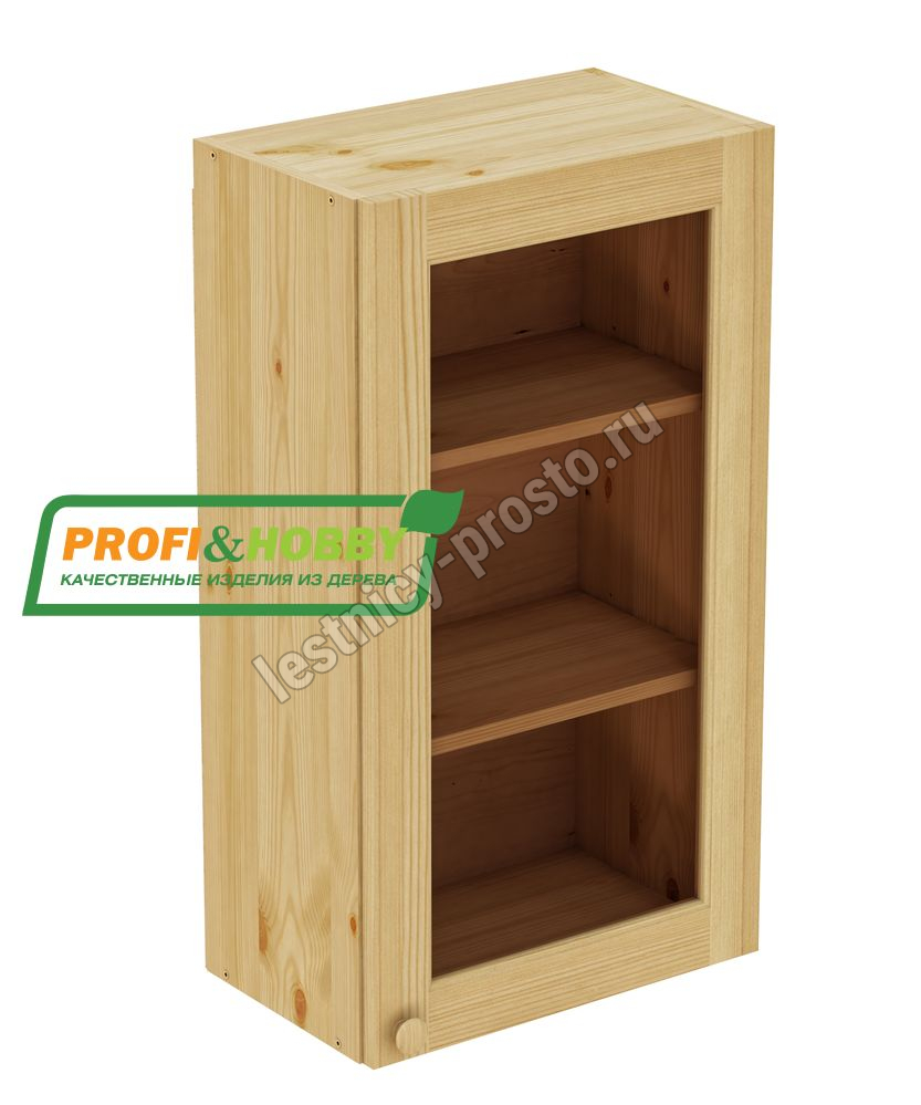 Шкаф навесной 500 х 300 х 900 под стекло, сосна, без покраски