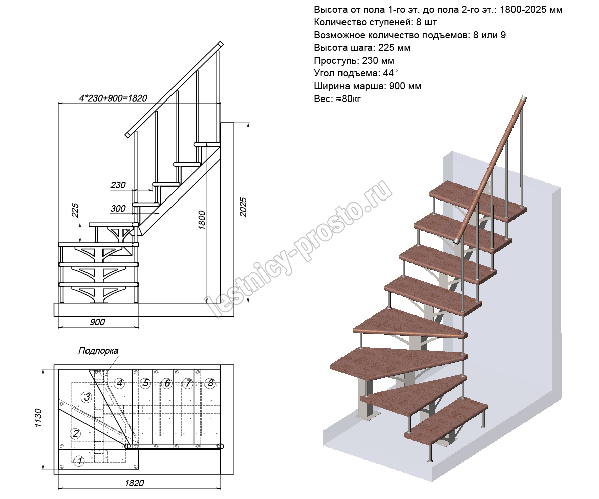 Высота лестницы 1800 - 2025 мм