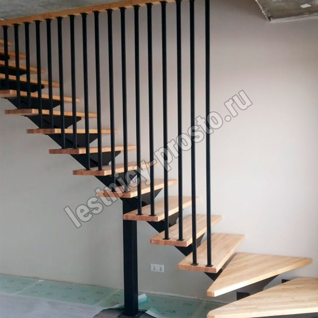 Лестница PROSTO MONO Г-образная h225 см, ступени лиственница