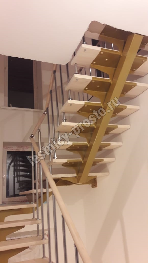 Лестница PROSTO MONO П-образная, h270 см, ступени бук