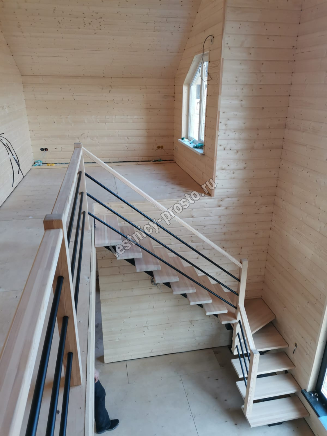 Лестница PROSTO MONO STEP TRINITY г-образная забежная, ступени бук, с ограждением