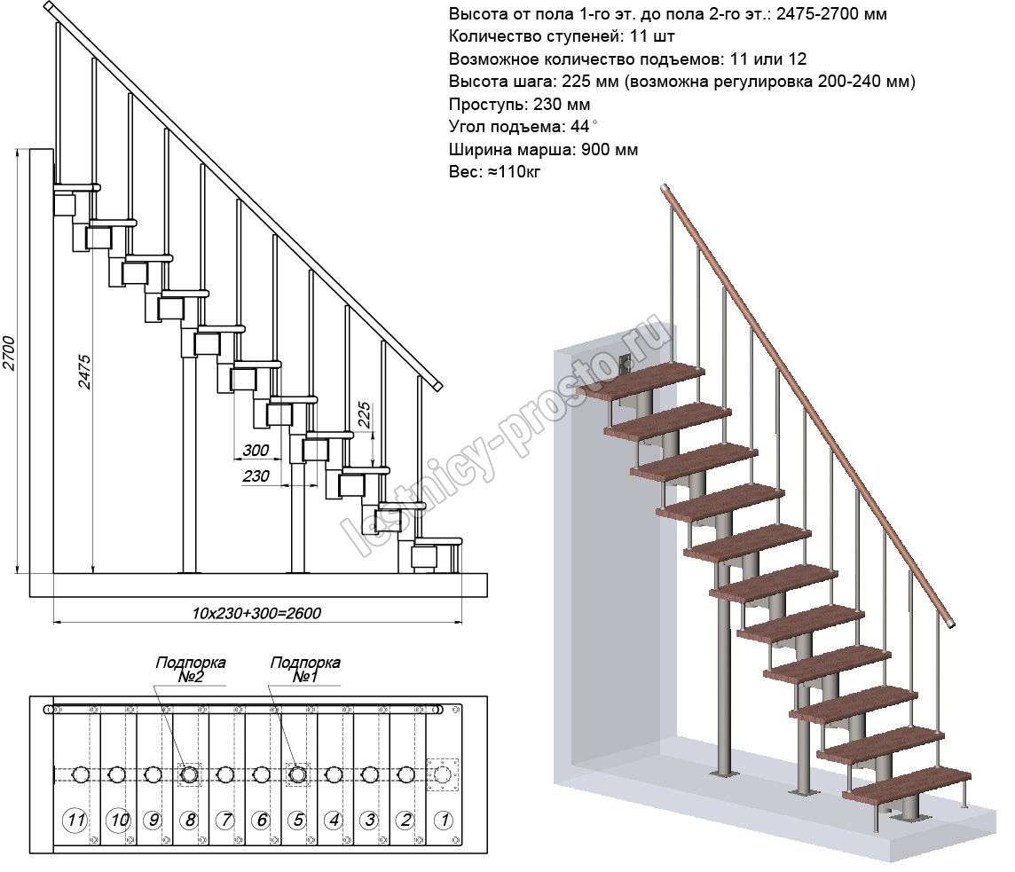 Поставляется в разобранном виде. Лестницу не сложно собрать и установить самостоятельно, при наличии базовых навыков работы с необходимыми инструментами. Если хотите сэкономить время и силы - вы можете заказать монтаж лестницы нашими специалистами.Упаковка: