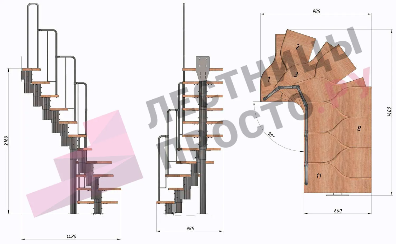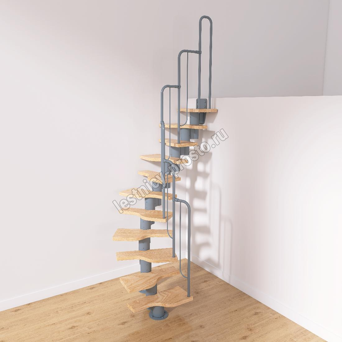 Лестница Prosto Urban Grey г-образная гусиный шаг 600 мм, h198-288 см (11 ступеней)