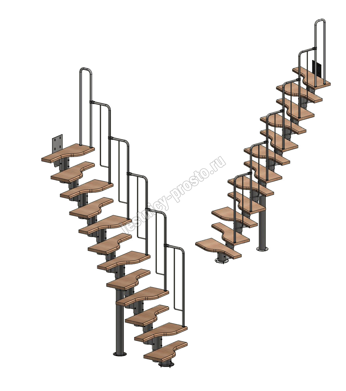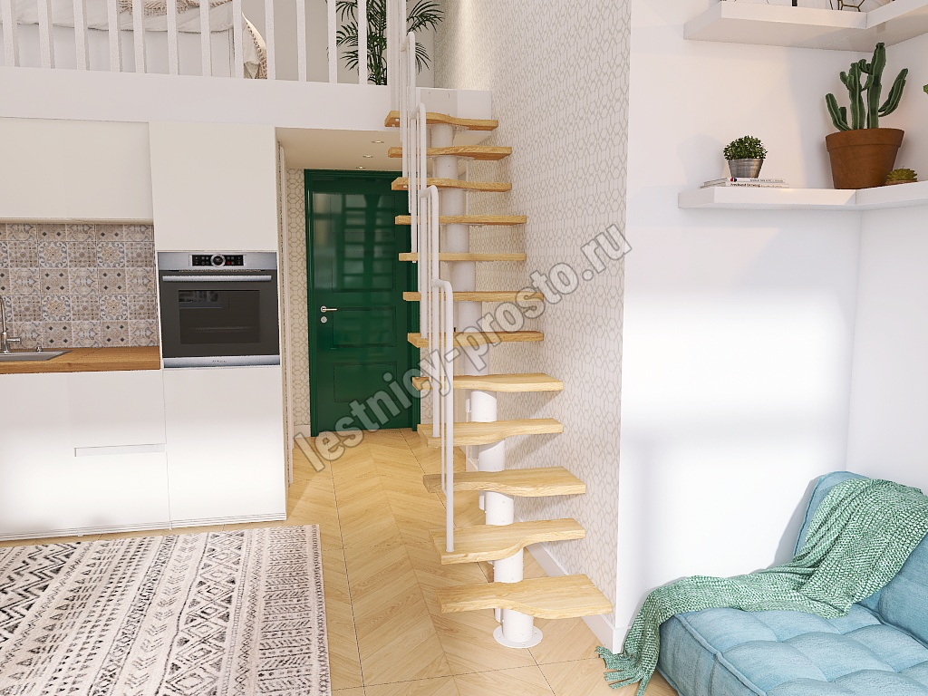 Лестница Prosto Urban White гусиный шаг 700 мм, h216-312 см (12 ступеней), бук