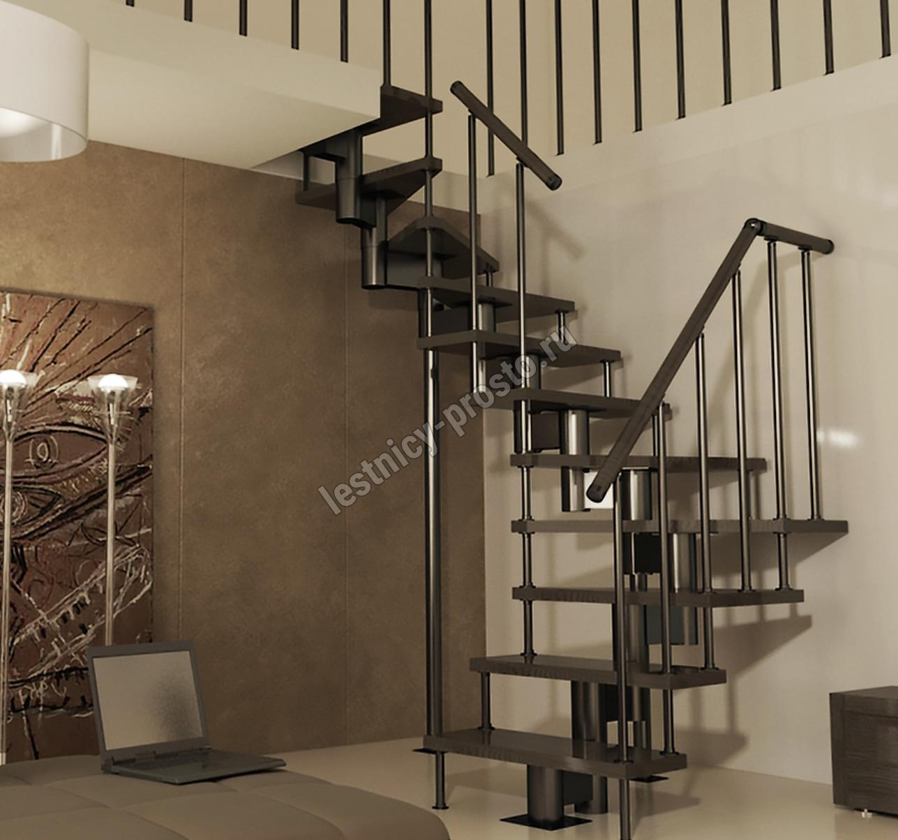 Каркас лестницы представляет собой набор модулей, которые комплектуются уже готовыми к монтажу.