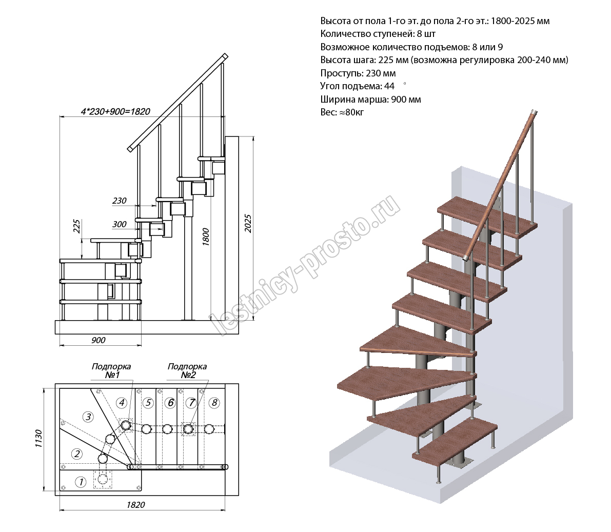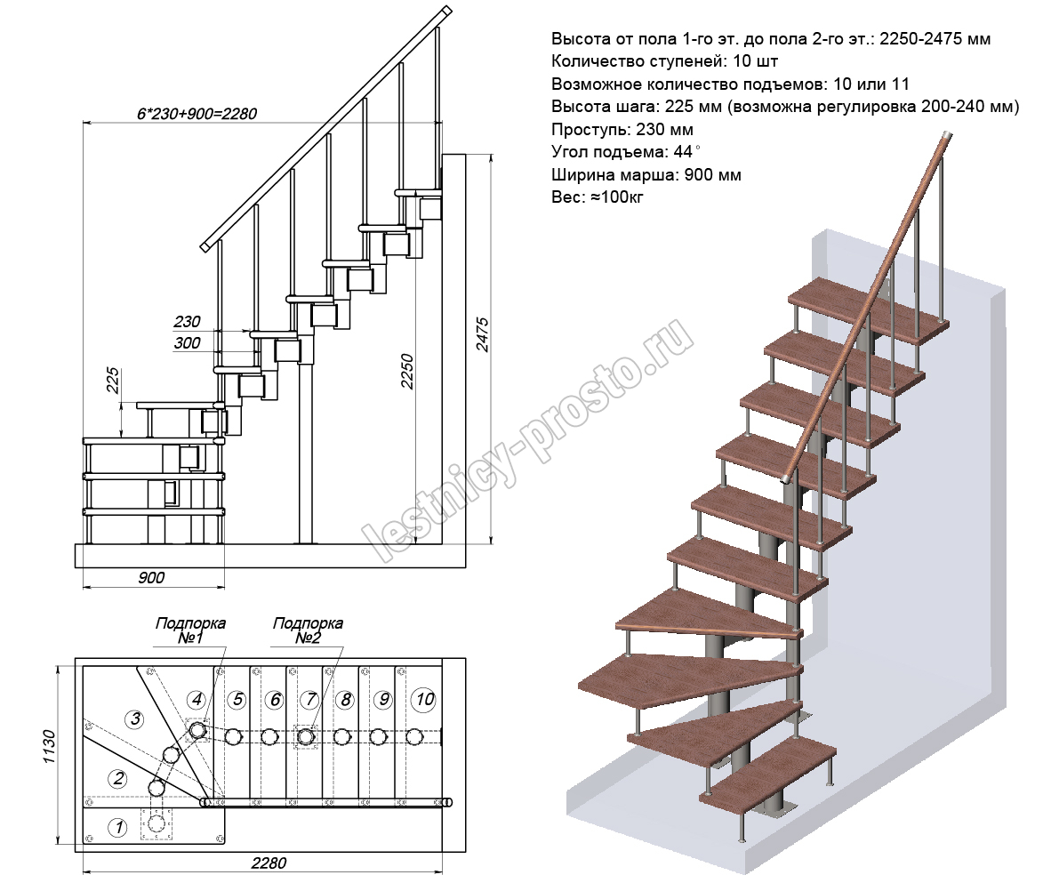 Количество ступеней до поворота - может быть любым , по запросу мы рассчитаем стоимость и сделаем чертеж-схему в соответствии с вашими параметрами.