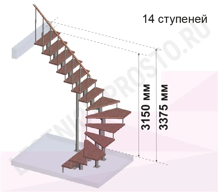 Модульная лестница PROSTO MODULE П-образная/ h337.5 см