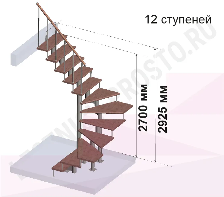 Количество ступеней до поворота - может быть любым , по запросу мы рассчитаем стоимость и сделаем чертеж-схему в соответствии с вашими параметрами. Так же, поворот лестницы может быть реализован через площадку. Звоните и пишите нам по всем возникающим вопросам: мы профессионалы в области лестниц и поможем правильно сориентироваться, не совершив ошибок!