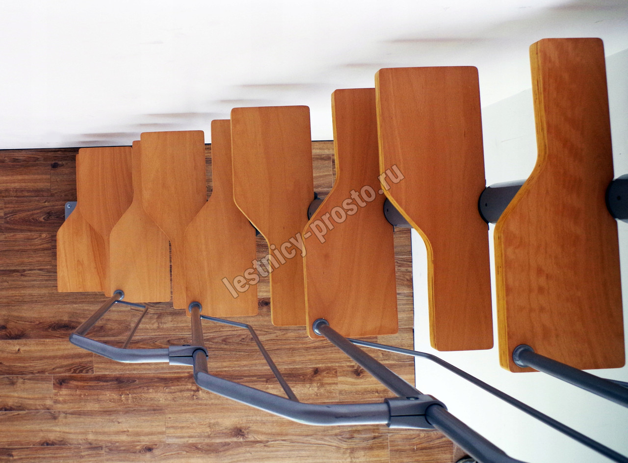Модульность конструкции позволяет регулировать высоту лестницы при сборке и собрать необходимый поворот до 90 градусов. Ограждение устанавливается на любую сторону.