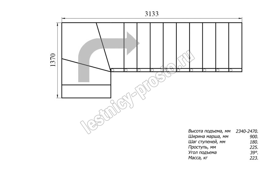 Модульная лестница Фаворит 180 2340-2470, Черный, Лиственница, Крашеная