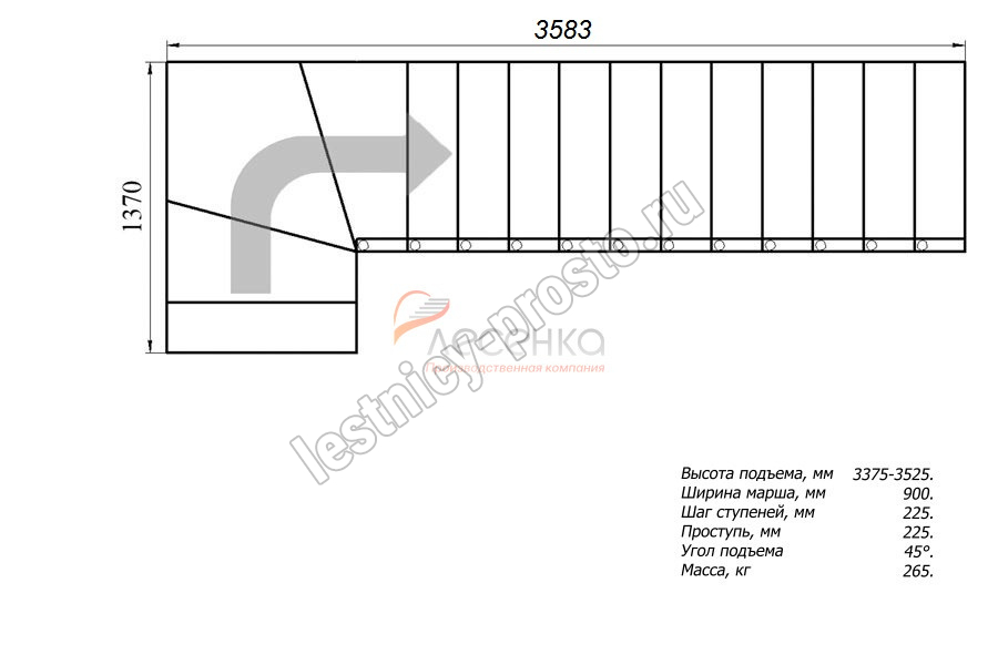 Модульная лестница Фаворит 225 3375-3525, Черный, Лиственница, Нержавеющая сталь