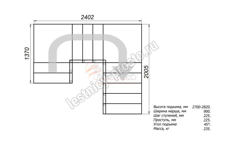 Высота лестницы 2700 - 2820 мм