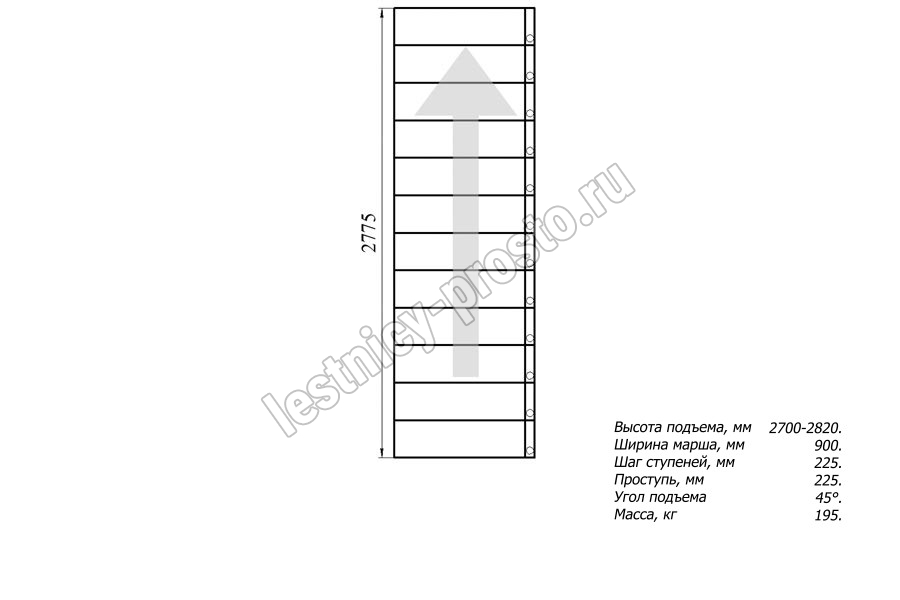 Модульная лестница Стандарт 2700-2820, Серый, Лиственница, Нержавеющая сталь