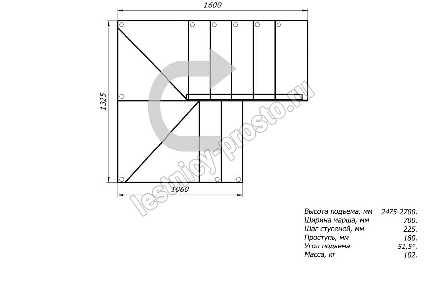 Модульная малогабаритная лестница Эксклюзив 2475-2700, Серый, Сосна, Нержавеющая сталь