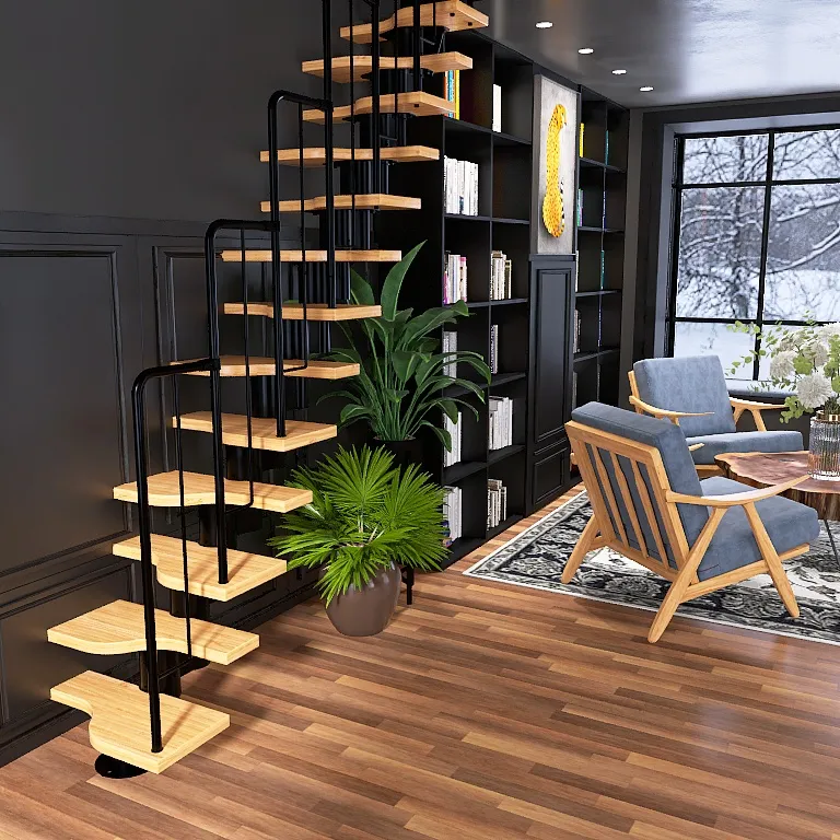 Модульная малогабаритная лестница Линия 2025-2250, Черный, Лиственница, Крашеная