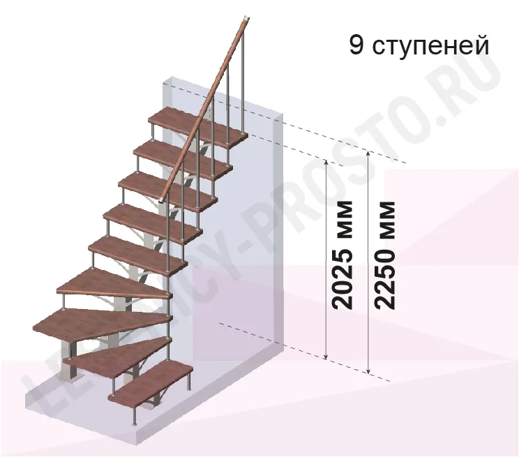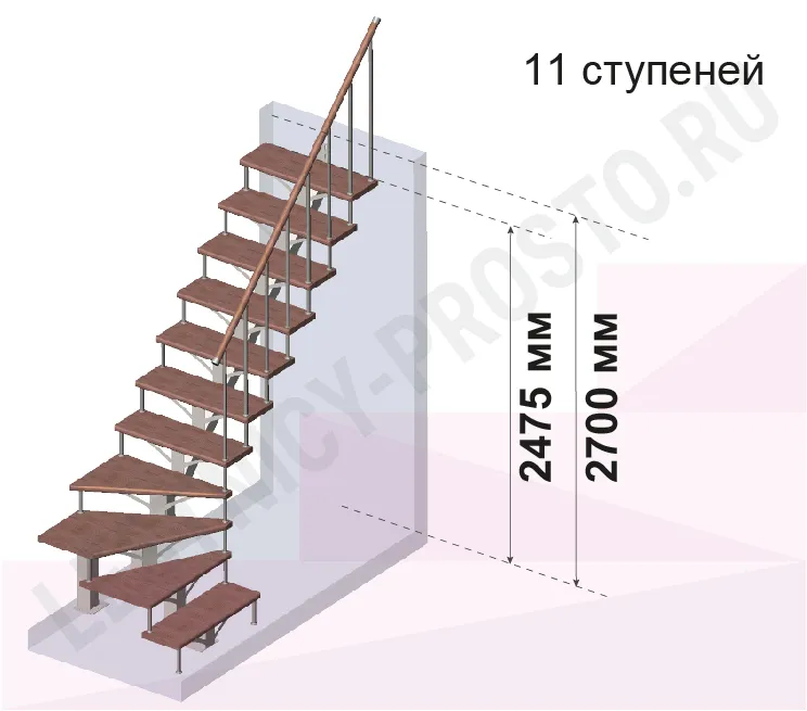 | Лестница PROSTO MONO Г-образная h270 см, ступени хвоя |