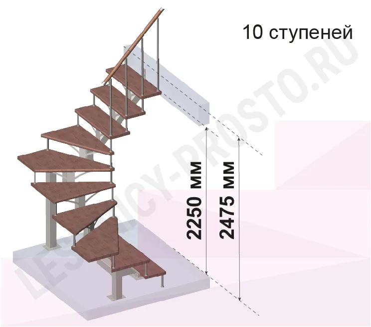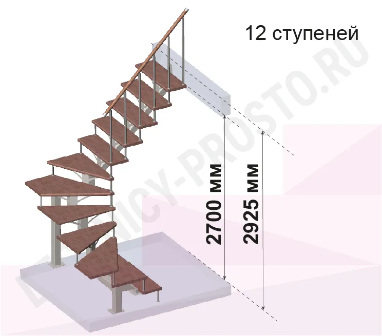 | Лестница PROSTO MONO П-образная, h270 см, ступени хвоя |
