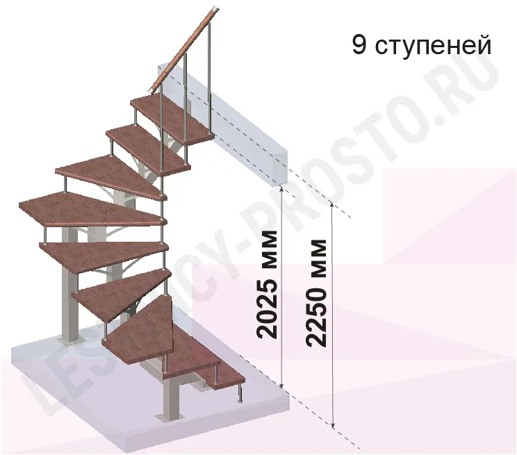 | Лестница PROSTO MONO П-образная, h225 см, ступени хвоя |
