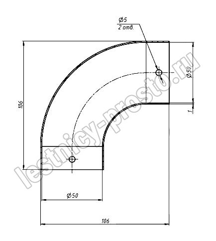 Отвод для поручня ПВХ ∅50 мм, внутреннее применение
