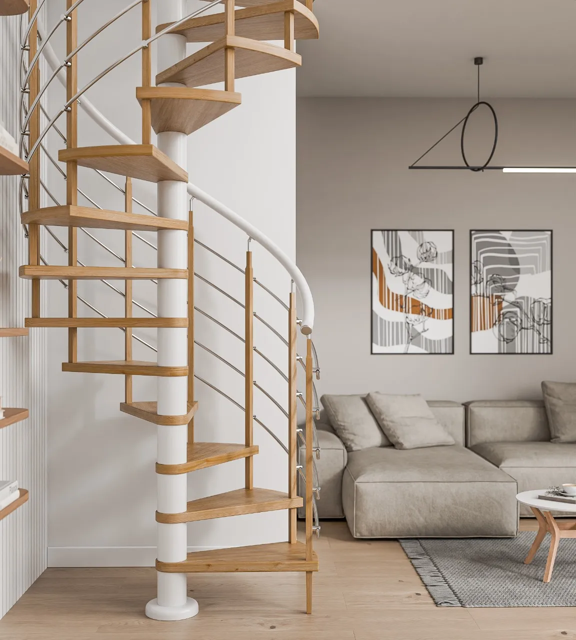 Новинка 2021 года !!! Не имеет аналогов в России по своему надежному конструктиву среди винтовых лестниц. Используемый материал - древесина шлифованная , не окрашенная и металл покрытый порошковой краской. Поручень - пластиковый, уже изогнутый. Цвет поручня в ассортименте.