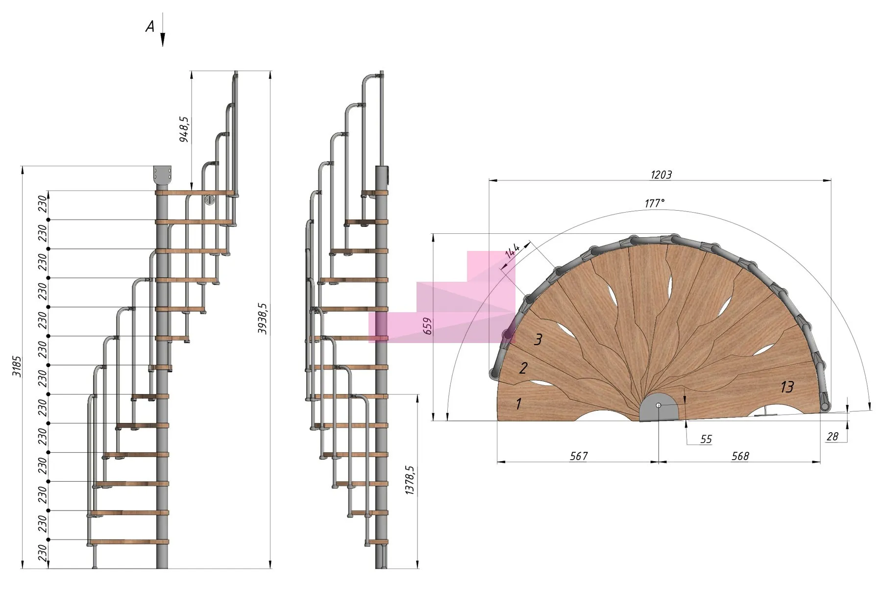 Винтовая лестница PROSTO MINI 60×120 см, h299-322 см