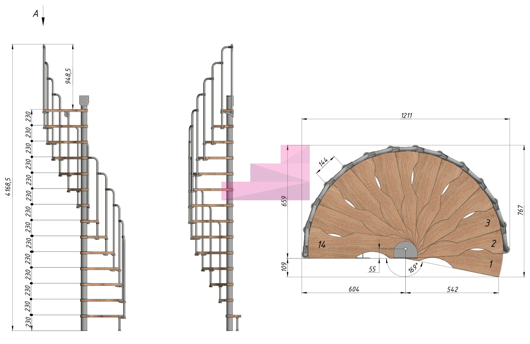 Высота лестницы 3220 - 3450 (14 ступеней) мм