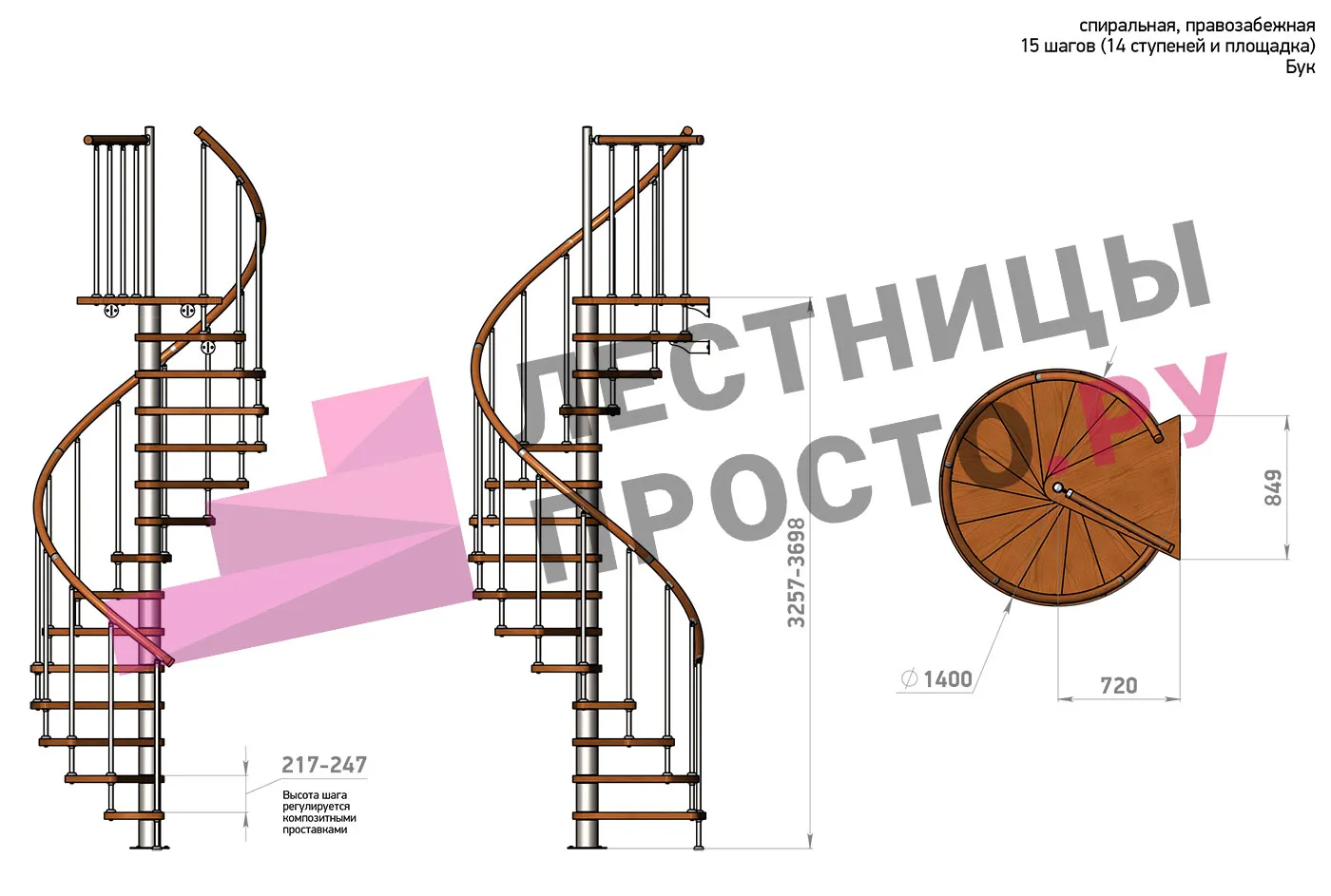 Винтовая лестница Prosto Spiral Black D140см, h325.7-369.8 см, бук