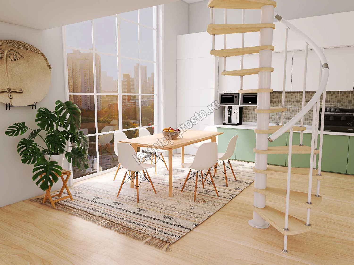 Винтовая лестница Prosto Spiral White D160см, h260.5-304.6 см, бук