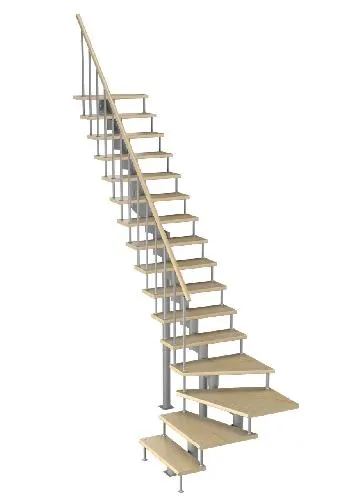 Ступени и поручень выполнены из сращенного бука и покрыты износостойким бесцветным защитным лаком. Все металлические детали с высококачественным порошковым покрытием. Каркас и металлические стойки серебристого цвета. Под заказ возможно изготовление лестницы другой расцветки.