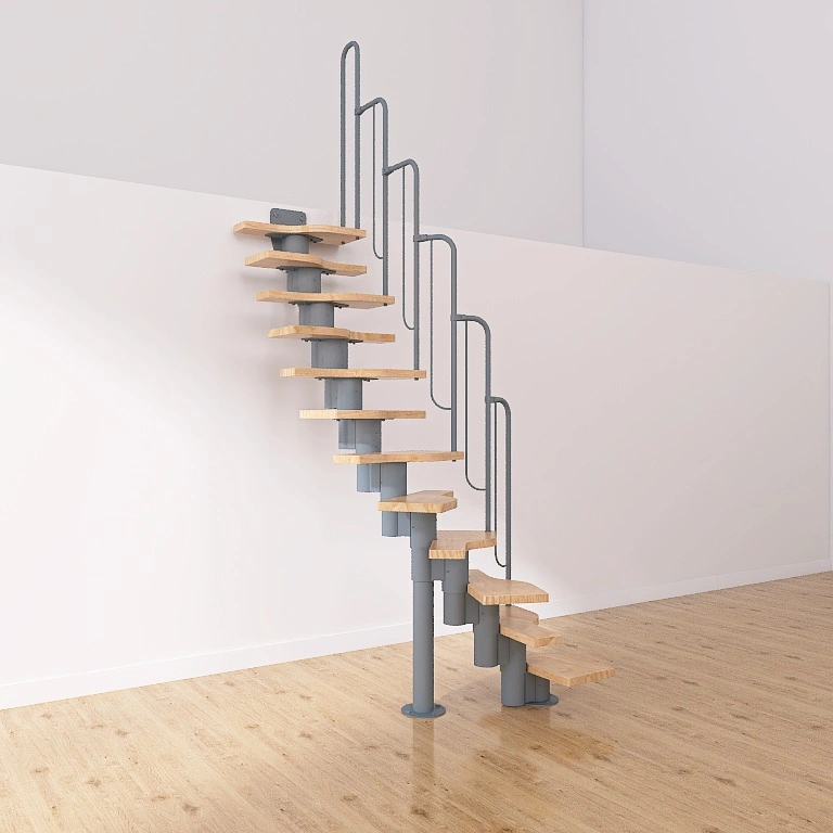 Ступени лестницы покрыты специальными накладками из износостойкого антискользящего материала. Площадка лестницы имеет универсальную форму, позволяющую встраивать лестницу в потолочные отверстия любой формы и размера. Высота лестницы регулируется при установке. С помощью специальных дополнительных секций, высоту лестницы можно увеличить до 3760 мм. (Секции покупаются отдельно). Во время сборки, задаётся необходимое направление поворота лестницы. CIVIK изготовлен из штампованной стали, окрашен в черный цвет (RAL 9017), белый (RAL 9010) или серый (RAL 9006). Отделка лестницы всегда в черном цвете. Перила из полиуретана с алюминиевым сердечником черного цвета, как и износостойкие нескользящие панели на ступенях.